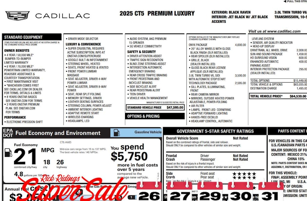 includes (SSJ) 20 alloy wheels with Gloss Black finish, LPO, (SPZ) Black Wheel Locks, LPO, (SPY) Black Wheel lug nuts, LPO, (RIK) Gloss Black nameplates, LPO, (5JS) Black mirror caps, LPO, (5XR) Black grille, LPO and (RXX) Gloss Black rear license plate applique, LPO (Includes (5V5) Black Rear spoiler, LPO. with Automatic Stop/Start (335 hp [250 kW] @ 5400 rpm, 405 lb-ft of torque [550 N-m] @ 2350-4000 rpm), (Includes (QES) 255/35ZR20 all-season, run-flat tires. includes (DXR) outside heated power-adjustable, body-color, power-folding and driver-side auto-dimming with integrated turn signal indicators, (DRZ) Rear Camera Mirror, (TL3) Hands-Free decklid release, (K6L) Pollutant, odor and fine dust air filter, (USK) air quality sensor, (UV6) Head-Up Display, (T95) Adaptive Forward Lighting headlamps, (TR7) Automatic leveling headlamp system, (UWN) Premium headlamp system, (T87) front cornering lamps and (B7G) illuminating front sills with Cadillac crest logo, DRIVETRAIN, ALL-WHEEL DRIVE, includes (C3U) sunroof and (UQS) AKG Premium Audio, HD SURROUND VISION, ENHANCED AUTOMATIC PARKING ASSIST, includes (VAV) All-weather floor mats, LPO and (VLI) All-weather cargo mat, LPO, TRANSMISSION, 10-SPEED AUTOMATIC.