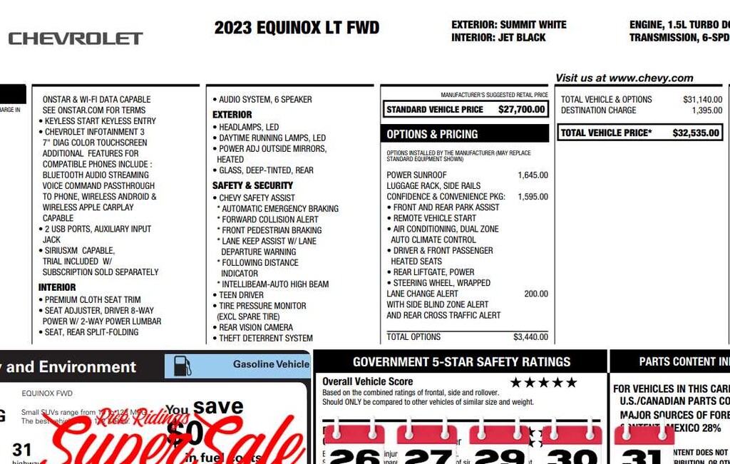 Back-Up Camera, Satellite Radio, iPod/MP3 Input, Onboard Communications System, Aluminum Wheels Chevrolet LT with Summit White exterior and Jet Black interior features a 4 Cylinder Engine with 175 HP at 5600 RPM*.