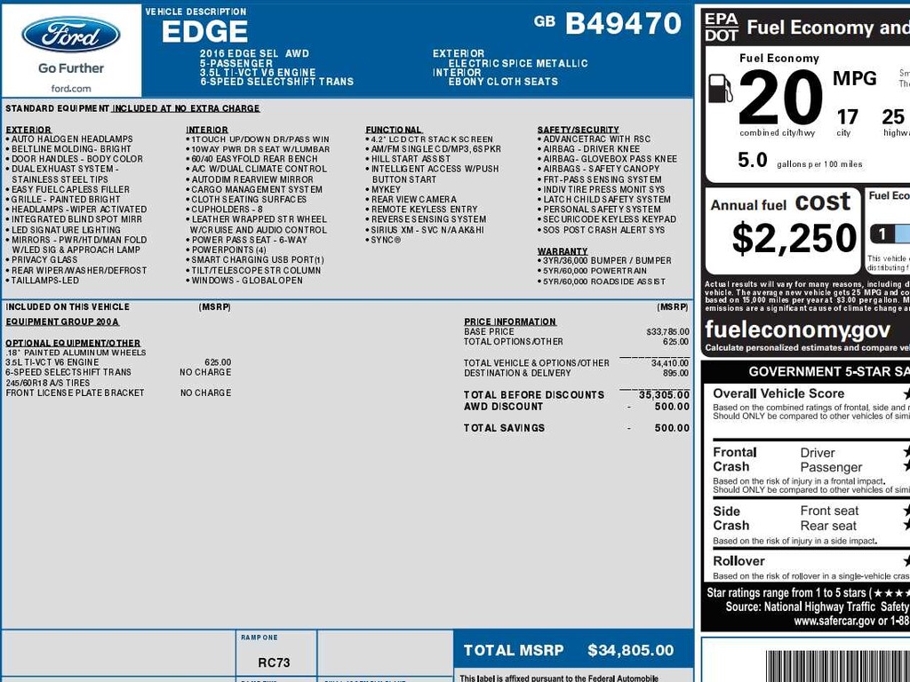 Back-Up Camera, Satellite Radio, iPod/MP3 Input, CD Player, Onboard Communications System. Ford SEL with Electric Spice Metallic exterior and Ebony interior features a V6 Cylinder Engine with 280 HP at 6500 RPM*.