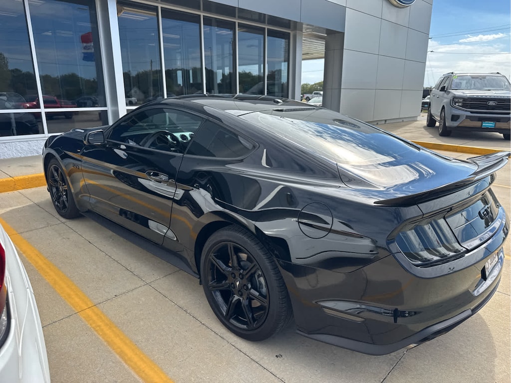 TRANSMISSION: 10-SPEED AUTOMATIC W/SELECTSHIFT steering wheel paddle shifters, Leather-Wrapped Shift Knob, Remote Start System, 3.15 Limited Slip Rear Axle Ratio, BLACK ACCENT PACKAGE Tires: 19, Black Decklid Spoiler, Black GT, 5.0 & Pony Badges, Wheels: 19 x 8.5 Ebony Black-Painted Aluminum, Painted Black Roof, MINI SPARE WHEEL & TIRE, ENGINE: 5.0L TI-VCT V8 (STD).
