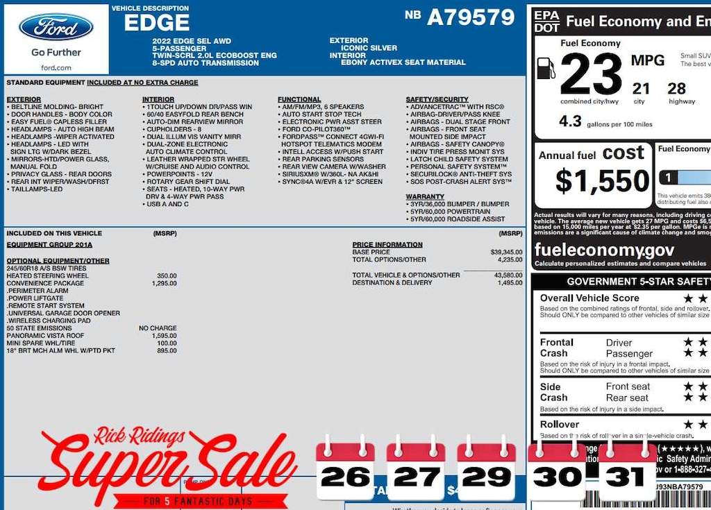 At Rick Ridings Ford we understand that your vehicle purchase is one of the biggest purchases you will make. Were here to make that process as easy and fun as possible. We cant wait to hear from you.