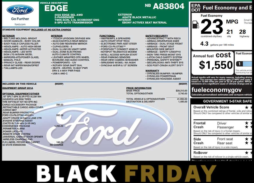 Heated Driver Seat, Back-Up Camera, Satellite Radio, iPod/MP3 Input, Onboard Communications System Ford SEL with Agate Black Metallic exterior and Ebony interior features a 4 Cylinder Engine with 250 HP at 5500 RPM*.
