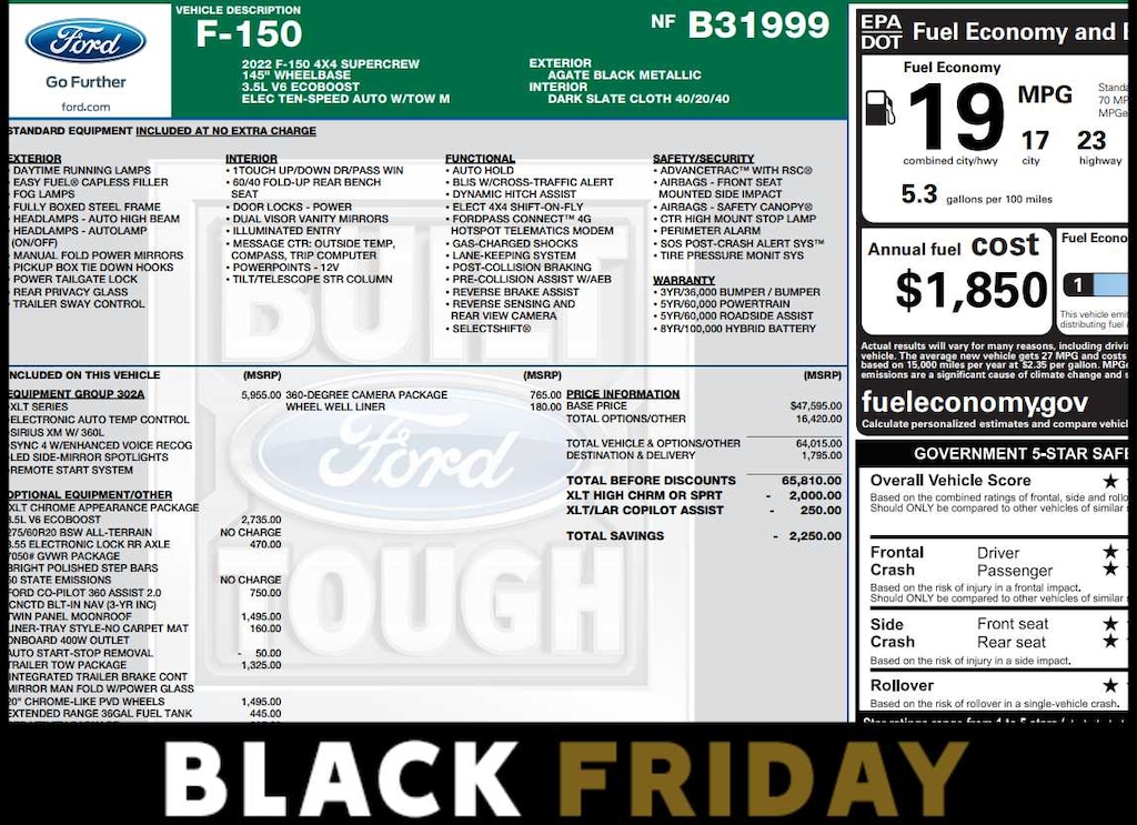 Class IV Trailer Hitch Receiver, towing capability up to TBD lbs, on 3.3L V6 PFDI engine (99B) and 2.7L EcoBoost engine (99P) or up to TBD lbs, on 3.5L EcoBoost engine (998) and 5.0L V8 engine (995), 7/4-pin connector, class IV trailer hitch receiver, smart trailer tow connector ( BLIS w/trailer tow coverage where BLIS is available), XLT Chrome Appearance Package, lower grille trim, Chrome Single-Tip Exhaust, Tires: 275/65R18 BSW Automatic Transmission, Chrome Door & Tailgate Handles w/Body-Color Bezel, bezel on side doors and black on tailgate, Wheels: 18 Chrome-Like PVD, 2-Bar Style Grille w/Chrome 2 Minor Bars, silver painted surround and black background mesh, Bright Polished Step Bars, Zone Lighting, Leather-Wrapped Steering Wheel, Intelligent Access w/Push Button Start, approach detection, SecuriCode, GVWR: 7,050 lbs Payload Package, 3.31 Axle Ratio, TWIN PANEL MOONROOF, trailer reverse guidance, rain-sensing wipers and forward sensing system, Evasive Steering Assist, Intelligent Adaptive Cruise Control w/Stop & Go, lane centering, Speed Sign Recognition, Connected Built-In Navigation (DISC), Navigation services require SYNC4 and FordPass Connect (optional on select vehicles), complimentary connect service and the FordPass app (see FordPass Terms for details), Eligible vehicles receive a complimentary 90-day trial of navigation services that begins on the new vehicle warranty start date, Customers must unlock the navigation service trial by activating the eligible vehicle w/a FordPass member account, If not subscribed by the end of the complimentary period, the navigation service will terminate, Connected service and features depend on compatible AT&T network availability, Evolving, BoxLink, 4 premium locking cleats, Zone Lighting, LED Box Lighting, Tailgate Step w/Tailgate Work Surface, ELECTRONIC LOCKING W/3.55 AXLE RATIO, selectable drive modes: normal, ECO, sport, tow/haul, slippery, deep snow/sand and mud/rut (STD).