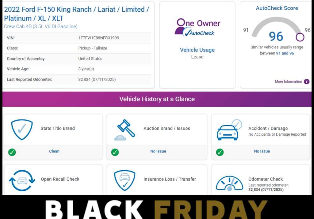 AutoCheck One Owner Was $43,990. This F-150 is priced $900 below Kelley Blue Book.