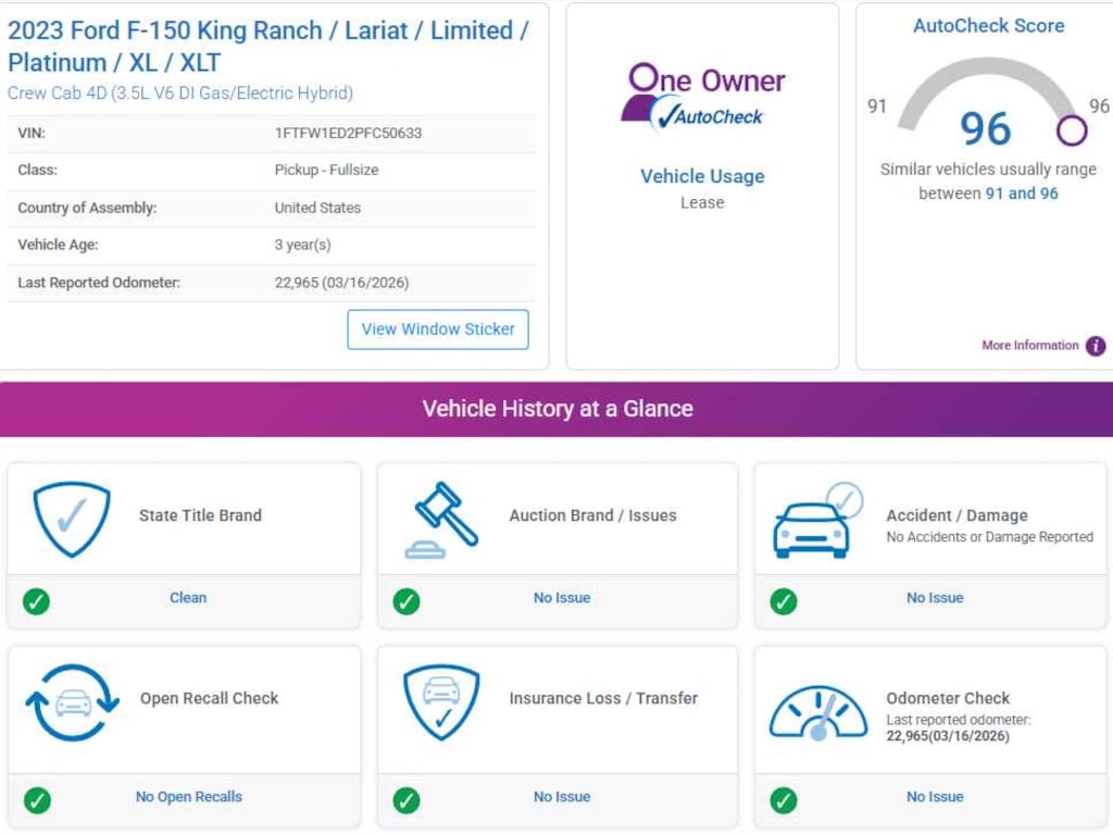 AutoCheck One Owner