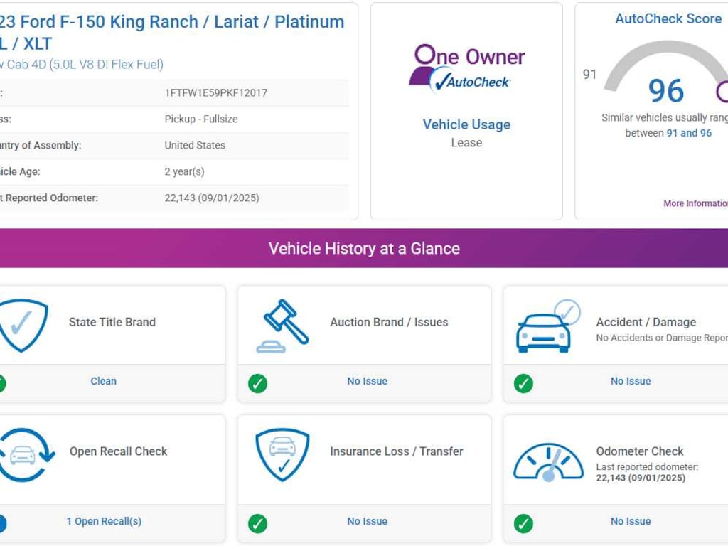 AutoCheck One Owner