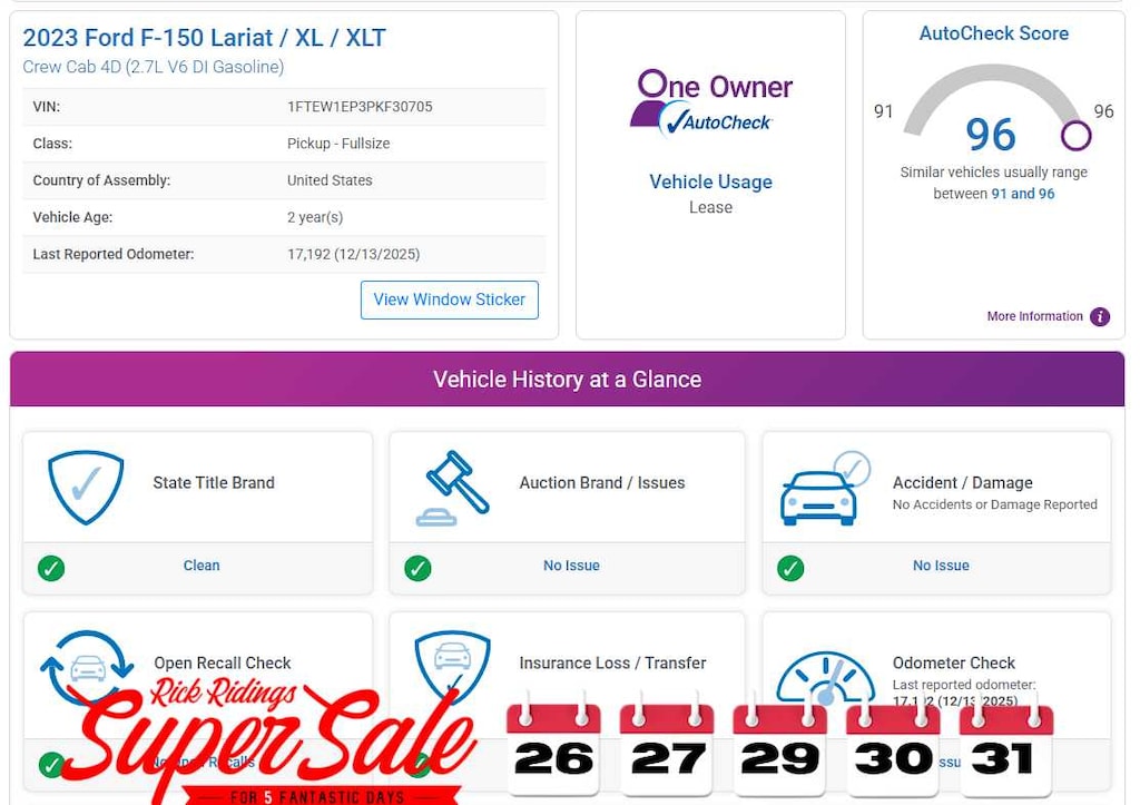 Pricing analysis performed on 12/17/2025. Horsepower calculations based on trim engine configuration. Please confirm the accuracy of the included equipment by calling us prior to purchase.