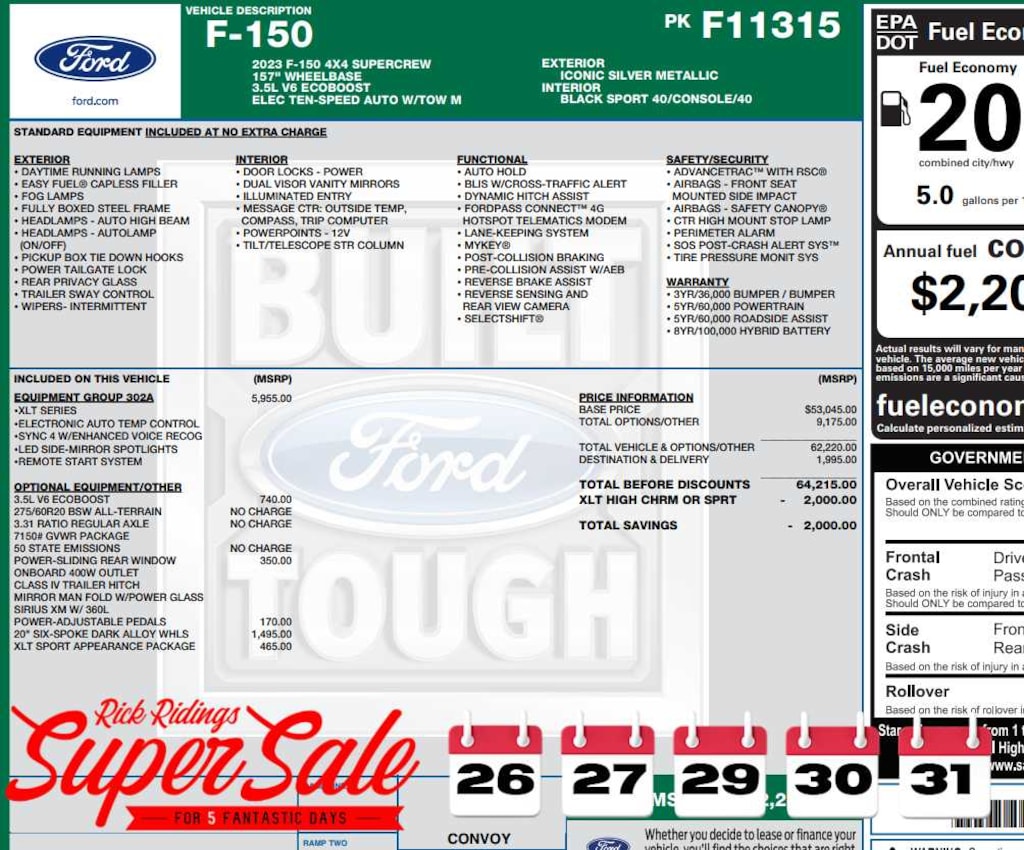 At Rick Ridings Ford we understand that your vehicle purchase is one of the biggest purchases you will make. Were here to make that process as easy and fun as possible. We cant wait to hear from you.