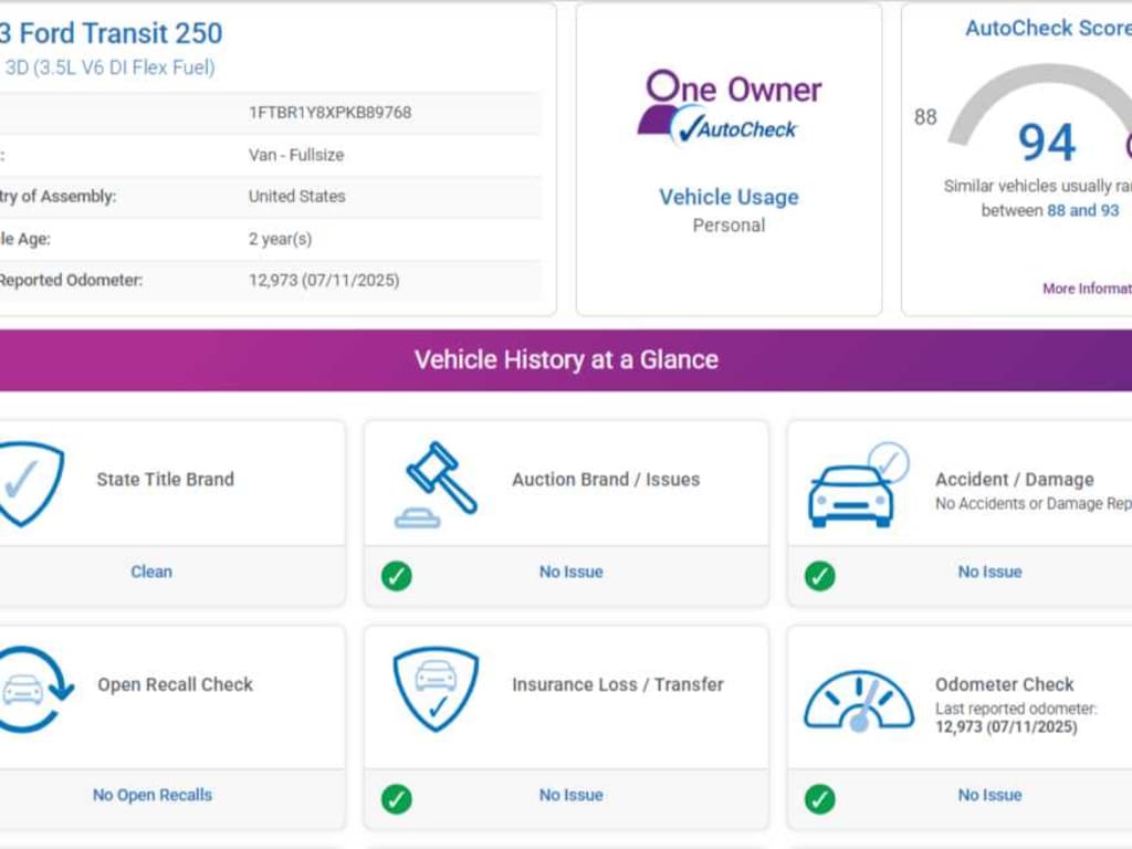 AutoCheck One Owner Was $31,990. This Transit Cargo Van is priced $23,300 below Kelley Blue Book.