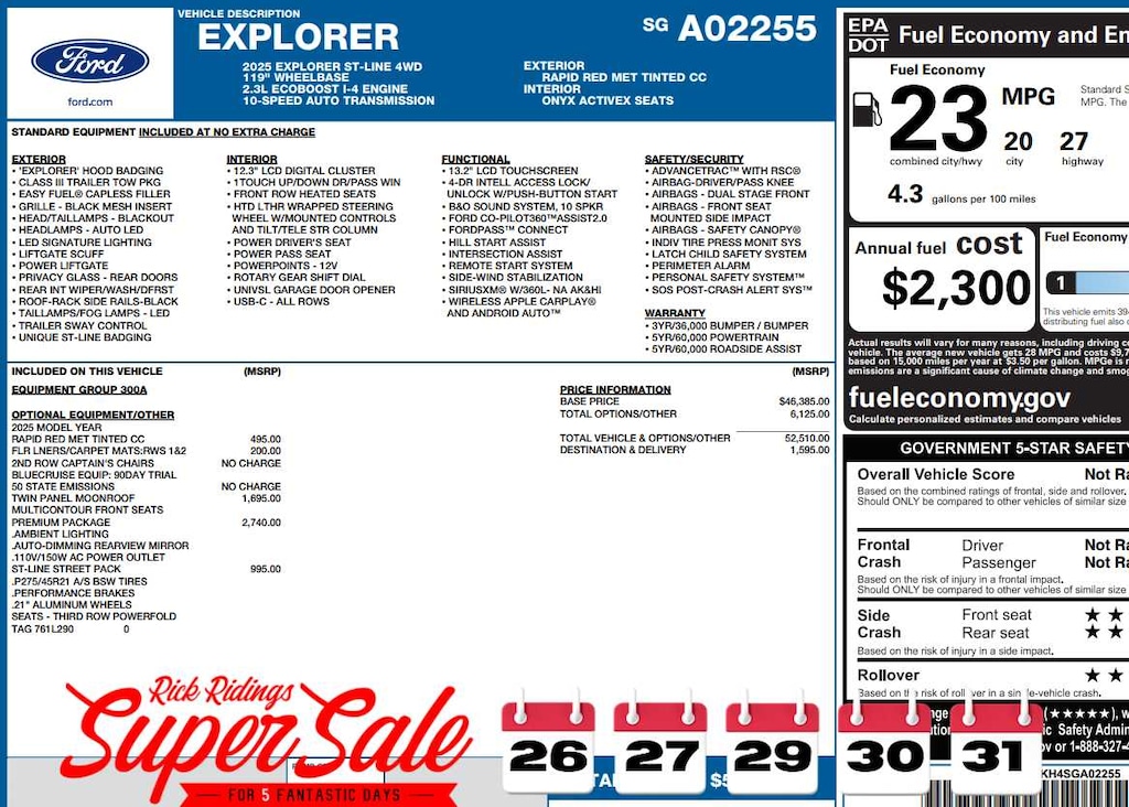 At Rick Ridings Ford we understand that your vehicle purchase is one of the biggest purchases you will make. Were here to make that process as easy and fun as possible. We cant wait to hear from you.